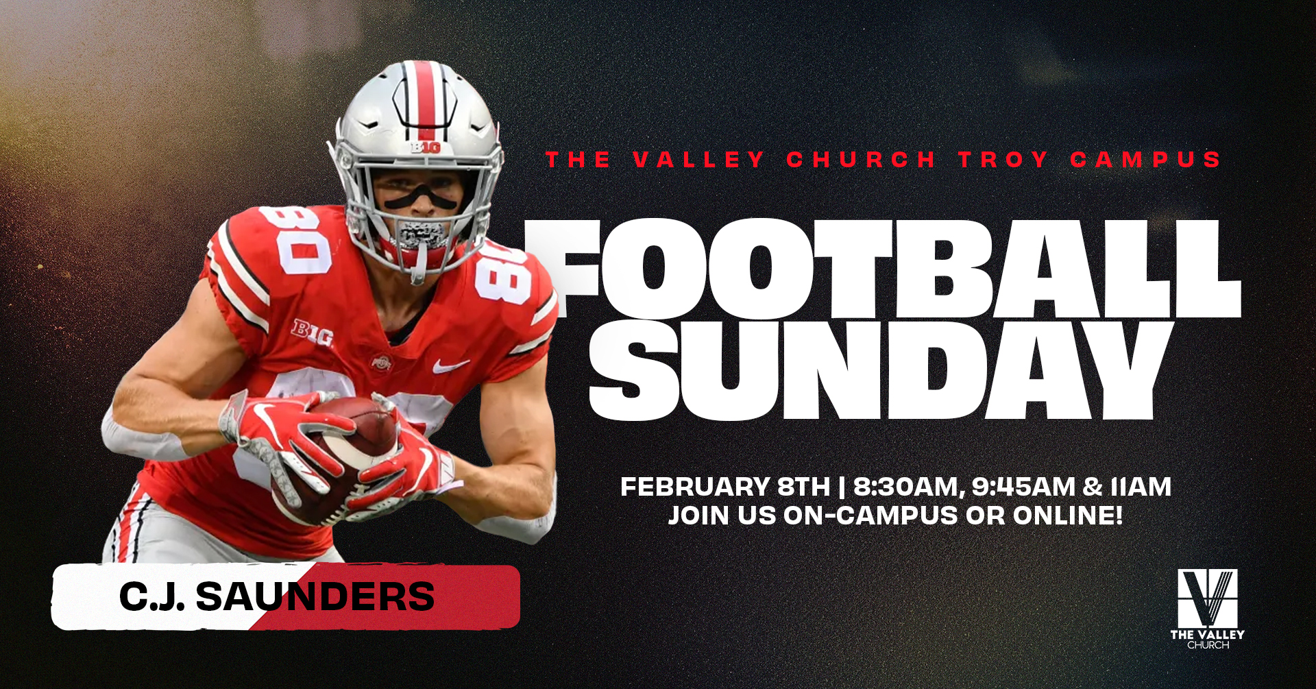 Grab a friend, neighbor, or your whole team and join us for a Sunday filled with football fun for all ages with Christ follower and former OSU player, C.J. Saunders, sharing about faith and football!