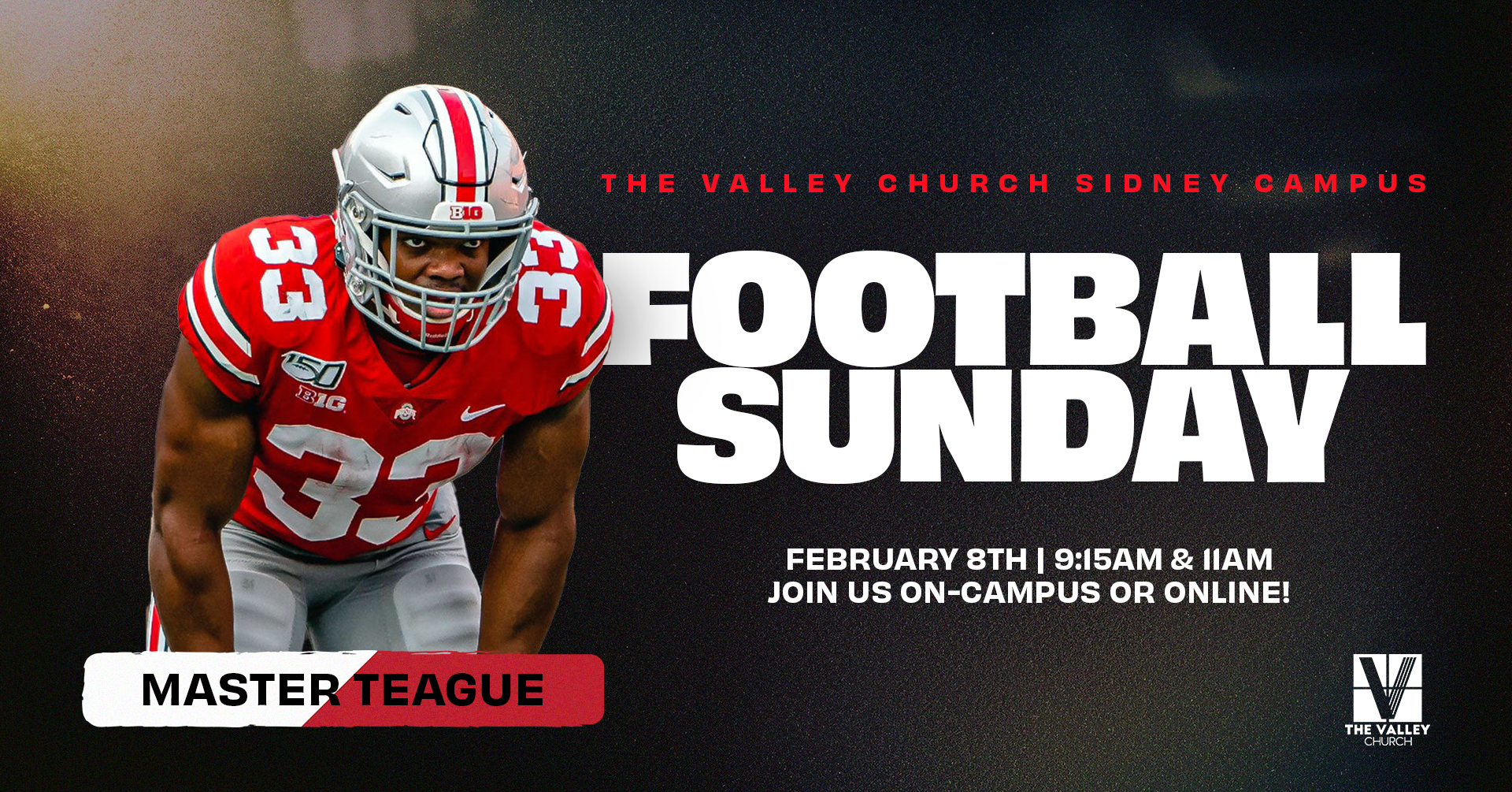Grab a friend, neighbor, or your whole team and join us for a Sunday filled with football fun for all ages with Christ follower and former OSU player, Master Teague, sharing a message about faith and God.
