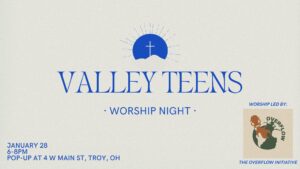 Join us for Valley Teens Worship Night—an evening to gather as a community and lift up the name of Jesus in downtown Troy!